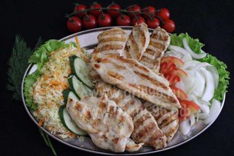 несколько кусочков сочного куриного филе замаринованно по традиционному рецепту и пожаренно на гриле